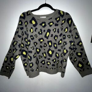 Cozy gray sweater with neon yellow & black leopard print. Fun and warm. Perfect for fall