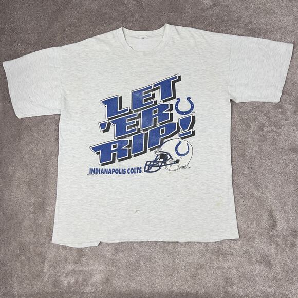 Gray Let 'Er Rip Indianapolis Colts Football T-shirt 1995 Size XL Sportswear