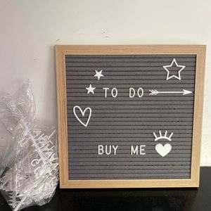 Cute 11.5 x 11.5 letterboard, gray with light wood trim. Excellent condition—most of the letters are still in their original packaging. Cross posted. Perfect neutral color and versatile design for work, school, or home decor for kids or adults!
