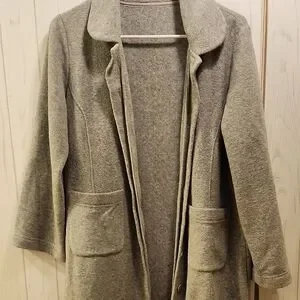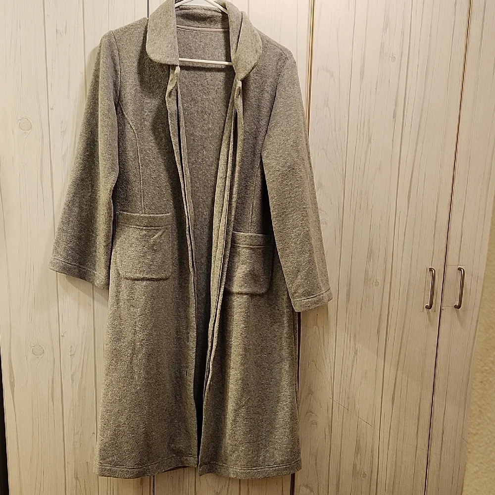 Stylish gray long robe with pockets. Perfect for chilly days. Polyester/Cotton