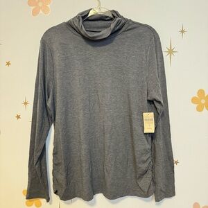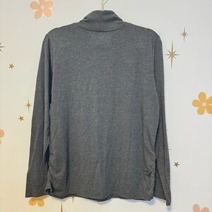 Stylish gray top with a cowl neck. Long sleeves for a cozy fit. Perfect for casual wear.