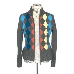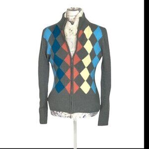 Nado Gray Long Sleeve Full Zip Argyle Pattern Cardigan