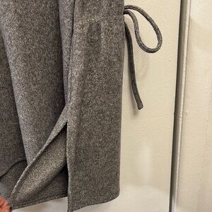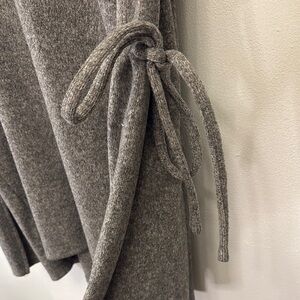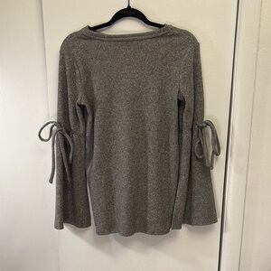 This elegant gray blouse features a stylish tie front and long sleeves, offering a chic and versatile look. The relaxed fit and soft fabric ensure comfort, making it perfect for any occasion.