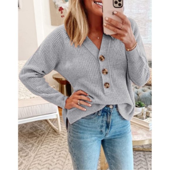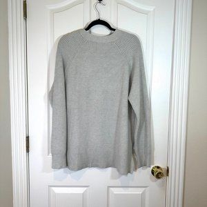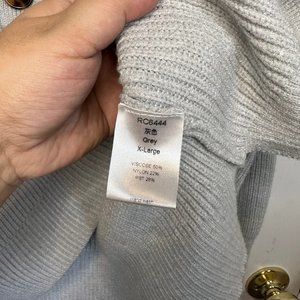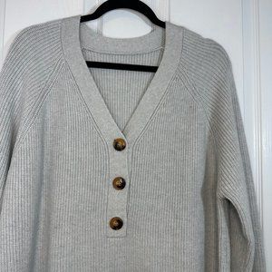 Gray Long Sleeve V-Neck Oversized Ribbed Knit Cozy Relaxed Fit Sweater XL
