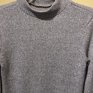 Brand is unknown. Size S. STRETCHY. LONG-SLEEVE and GRAY. No tags but NEVER WORN.