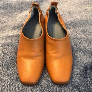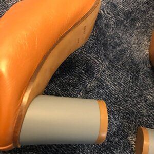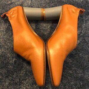 Between a shoe and a boot. The minimalist pumps in Napa leather feature a square toe and an elastic back for a comfortable fit. The heal is a cylinder shape in Gray. The inside leather is gray which creates a fun colour. Made in Italy. Like new. HEIGHT: 2.3“ / 60mm