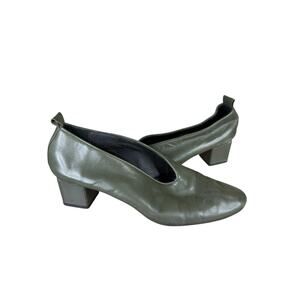 Beautiful Gray Matters olive green leather pumps, made in Italy.