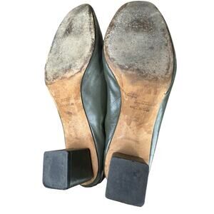 Gray Matters Olive Green Leather Block Heel Pumps Size 8 US made in Italy