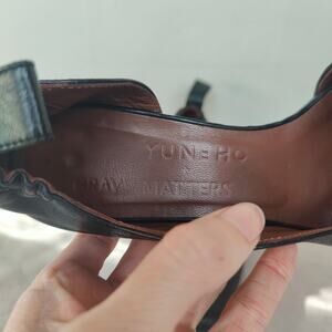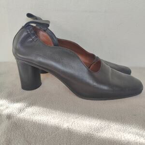 Gray Matters Yune Ho Cut Out Heels Womens 7 37 Black Leather Block Heel D'Orsay Minimalist Capsule