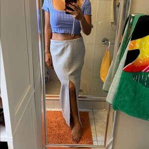 Stylish gray maxi sweater skirt featuring a front slit. Perfect for casual outings. I used for school drop offs
