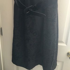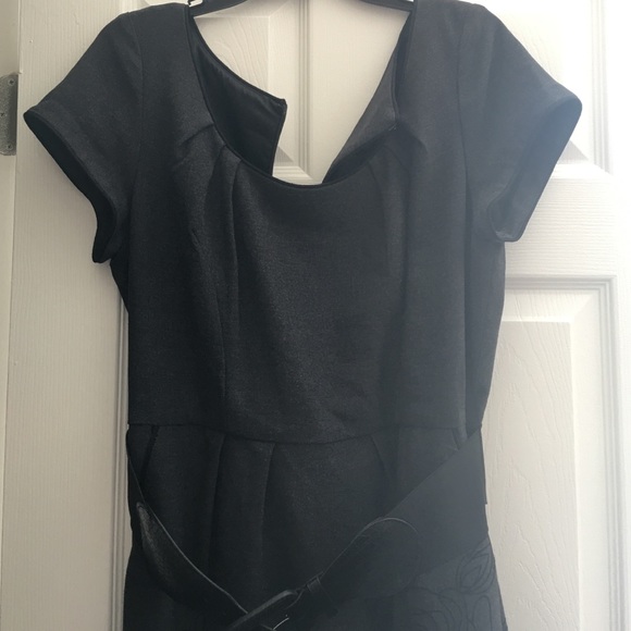 Gray Midi Shift Dress, Scoop Neck, , Short Sleeves, Black Flower Design on the Bottom, Belted with Pockets, Size 16