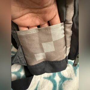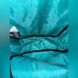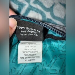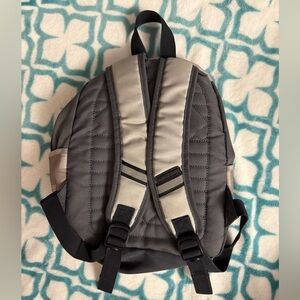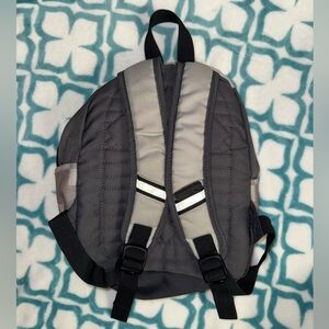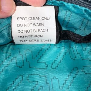 12” back pack designed by J!NX. Reflector material, see pictures. My orange mechanical pencil is pictured for size reference.