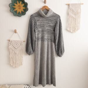 Gray Mock Neck Balloon Sleeve Midi Sweater Dress