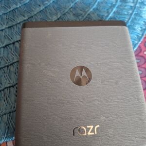 Stylish gray Motorola Razr flip phone with a sleek design.
