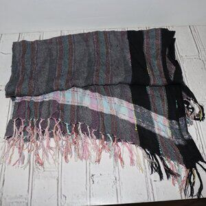 🎨 Gray & Multicolor Square Scarf with Fringe – 36" × 38"
