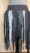 Layered skater/pixie/tutu skirt! Gray and black knit fringe skirt. The bottom layer is a black cotton blend material with ruffle/mummy fringe overlay. Knit stretchy waistband. Can also be worn as a tube top! Great for raves, festivals, halloween, mummy/ghost/mermaid/sea costumes and more! I also make matching gloves and leg warmers!