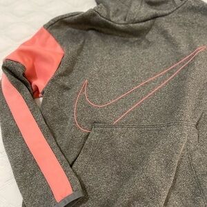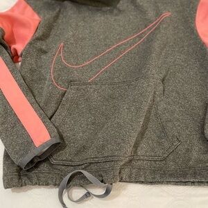 Gray Nike Hoodie with pink trim. Size M. Dry fit