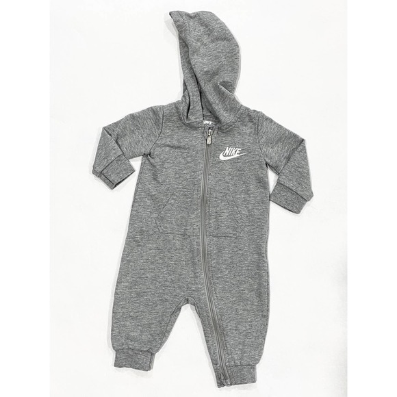 Gray Nike One Piece | Infants Zip Front Long-Sleeve Hooded Coverall