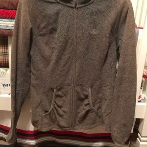 gray NF jacket // the jacket has discoloration from the heat of the dryer // medium