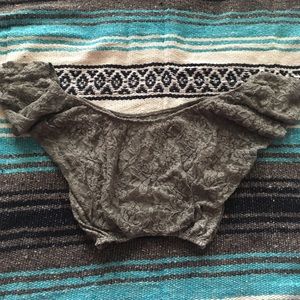 Worn once! It's too big for me. Beautiful off the shoulder Crop Top from Hollister. Hollister labeled crossed out to prevent return. Cute for the summer!