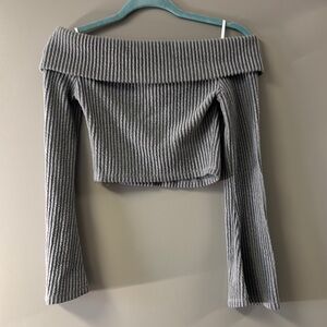 Gray Off-Shoulder Ribbed Sweater