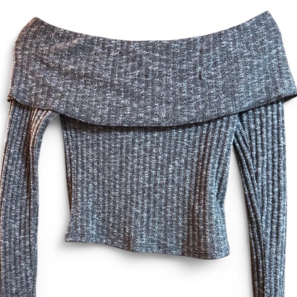 Urban Outfitters Grey Off The Shoulder Long Sleeve with ribbed texture