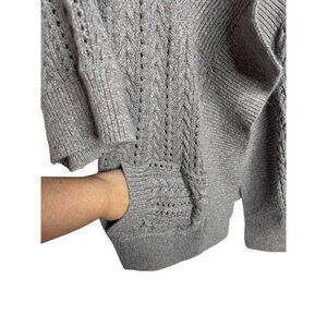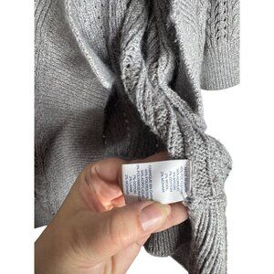 This cozy cardigan features a soft knit design with cable detailing and an open front. Its versatile gray tone complements various outfits.