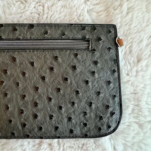 Gray Ostrich Leather Zip Pouch Small 8.5 in by 5 in