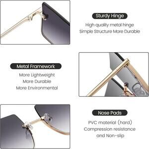 Gray Oversized Square Sunglasses Rimless, Gradient, Fashionable & UV Protection