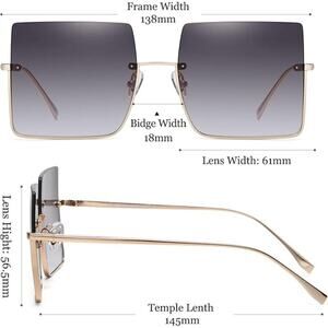 FASHION OVERSIZED SQUARE SHAPES-These large square semi-rimless sunglasses are keeping up closely with the latest fashion trend.These trendy women's sunglasses are chic, glamorous and will be a perfect addition to your daily fashion accessories.