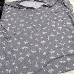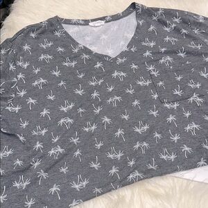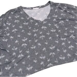 Gray Palm Tree Print V-Neck Top size 3X