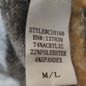 Stay warm and stylish with this gray patterned women's sweater. Featuring a unique design with accents of yellow, brown, and blue, this sweater is perfect for any casual outing.