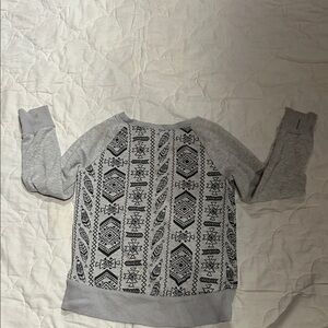 Stylish gray sweatshirt with intricate black patterns. Perfect for casual wear.