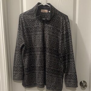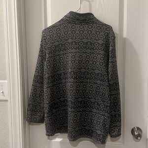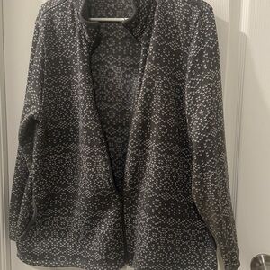 Stylish gray zip-up jacket with a unique pattern. Perfect for casual wear.