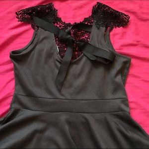 This is a super cute grey peplum shirt with place lace detailing on top. The back is unique because you can tie a bow with the ribbon! Super cute top!