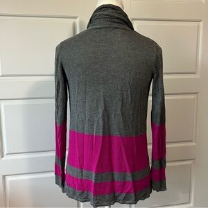 Gray & Pink Striped Open Front Cardigan Sweater Casual Comfy Layering