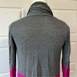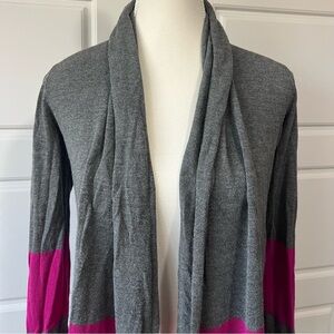 Gray & Pink Striped Open Front Cardigan Sweater Casual Comfy Layering