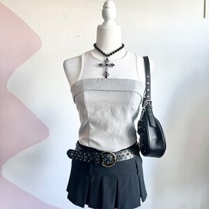Gray Pinstripe Top, Preppy, Office Siren, Y2K, Minimalist, Small, Vintage