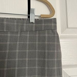 Gray and white Plaid Slacks. Size Large. Elastic waist band and comfy/stretchy material. Skinny leg