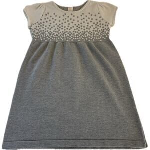 Charming gray kids dress with playful polka dots. Perfect sweater dress for any occasion this winter.