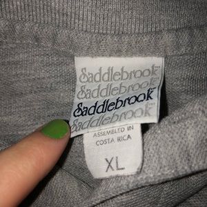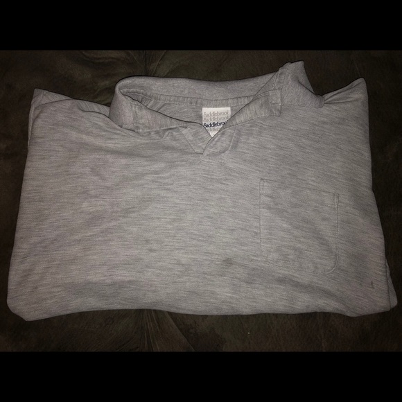 Gray polo with slight discoloration (it isn’t very noticeable). Size XL.