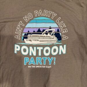 Celebrate in style with this gray Pontoon Party graphic tee. Perfect for casual outings and summer vibes.