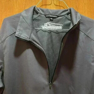 3/4 zip windbreaker. Preowned. Color gray. 100% polyester no ribs tears or stains. Extended tail. Approximately 25 inches pit to pit 31 inches long.