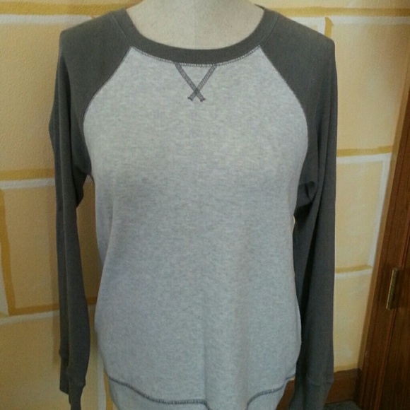 Eddie Bauer Pullover. Light gray body. Dark gray sleeves.