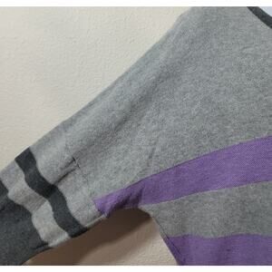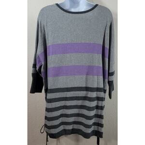 Gray Purple Striped V Neck Sweater Top XL Lightweight Soft Stretchy Side Ties