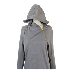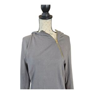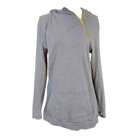 Stay cozy and stylish with this gray quarter-zip hoodie. Perfect for casual outings and layering.