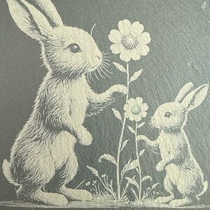 Enhance your dining experience with these charming gray coasters featuring an adorable rabbit design. Perfect for adding a touch of whimsy to your home bar or dining area.
