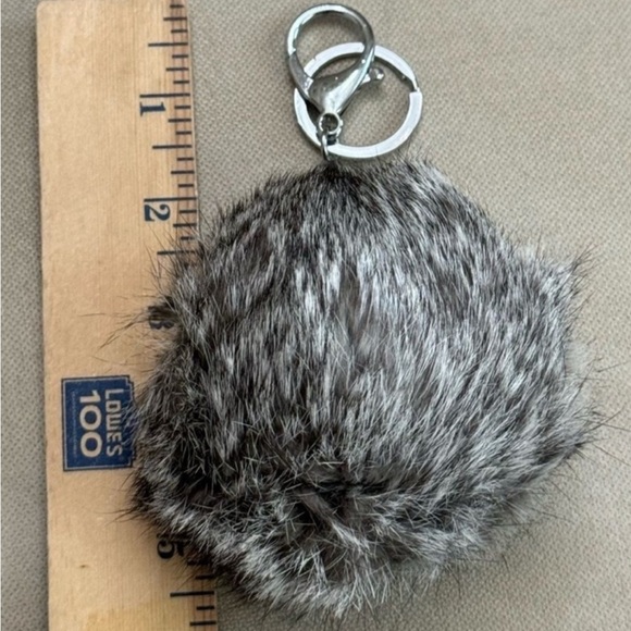 Add a touch of elegance to your accessories with this gray genuine rabbit fur keychain. Perfect for adding style to your bag or keys. Quality silver hardware. Excellent condition. From my smoke free home.