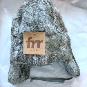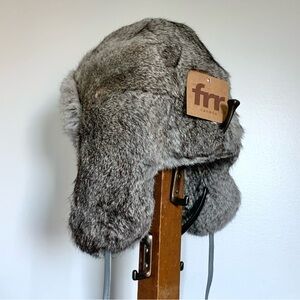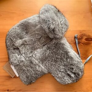 Stay warm and stylish with this gray rabbit fur trapper hat. Perfect for cold weather, it offers both comfort and elegance.