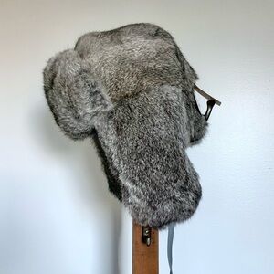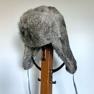 Gray Rabbit Fur Trapper Hat